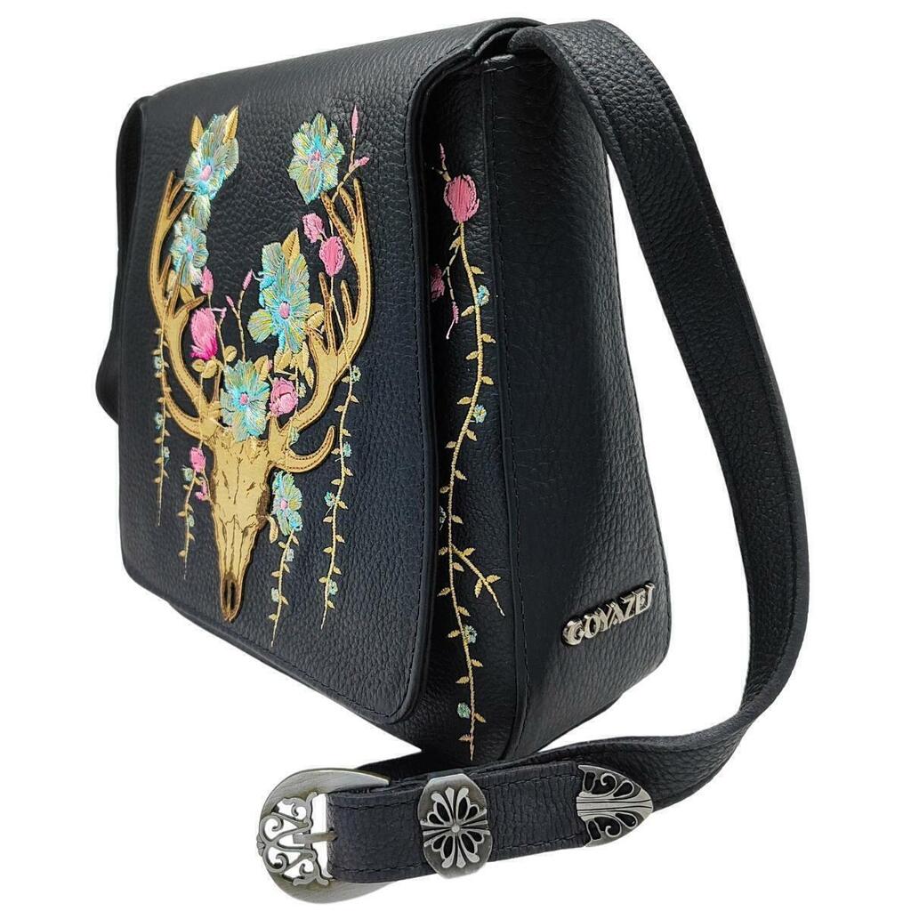 A Bolsa Goyazes Feminina é a escolha ideal para quem busca estilo e praticidade. Fabricada em couro legítimo de boi, ela se destaca pelos seus bordados e transsados únicos. O aplique de rebites e o Logo Goyazes em metal trazem um toque especial.