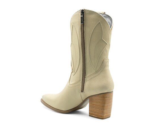 • Com sua elegante cor marfim e salto de 7,5 cm, elas transformam qualquer look do comum em algo espetacular. São a peça-chave que você precisa para adicionar personalidade e um toque de elegância western ao seu visual do dia a dia.