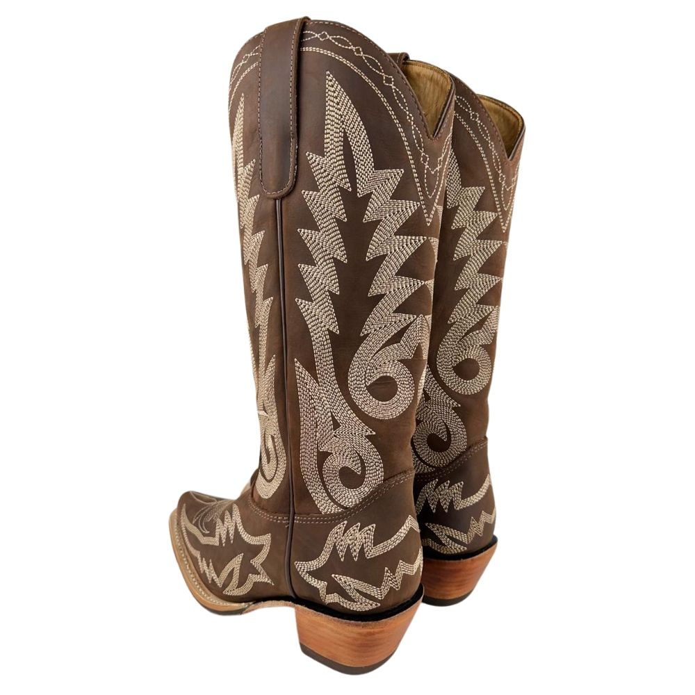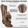 Bota Texana Feminina Goyazes Dackar Café Bico Fino Bordado Solado Injetado Ref:256803-CC