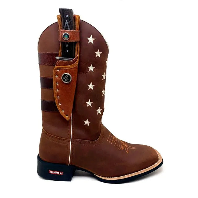 BotaFaca Americana – Couro Crazy Horse Nescau | Bordado Branco