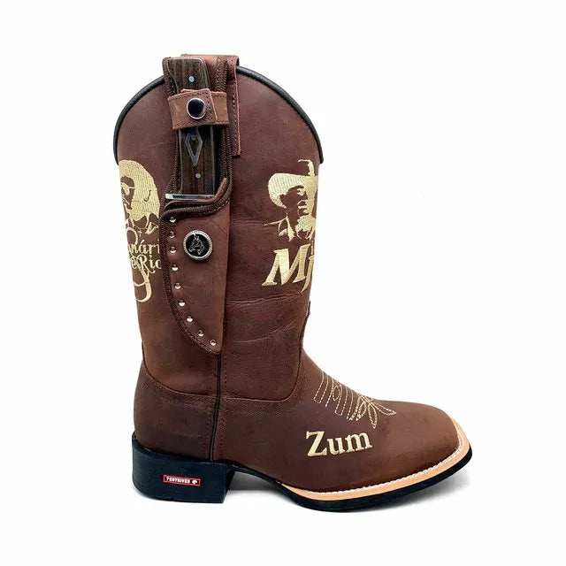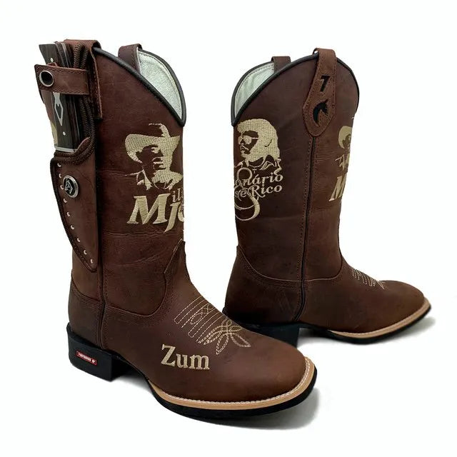 BotaFaca Milionário e José Rico – Couro Crazy Horse Nescau | Bordados Bege