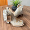 Botina Cano Médio Michele com Kit Canivete – Couro Off-White/ Bordado Cruz Marrom e Bege