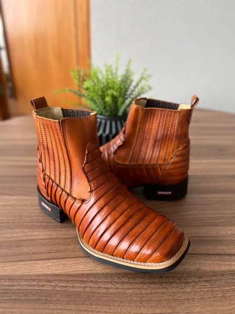 Botina Cristiano – Couro Pinhão Queimado/ Bordado Tatu