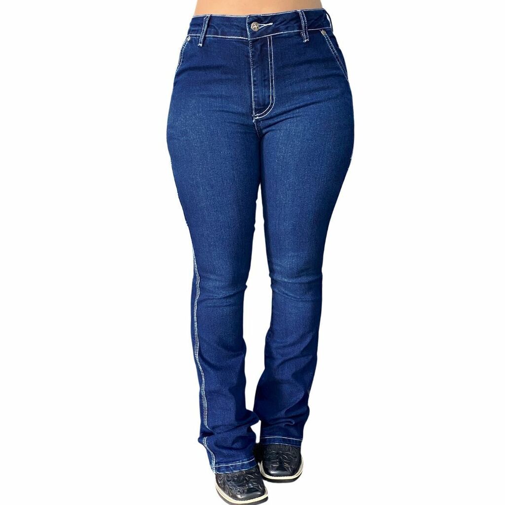 Calça Feminina Tex Team Carpinteira Bordada Amaciada Azul