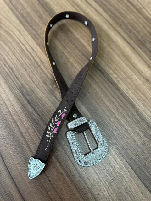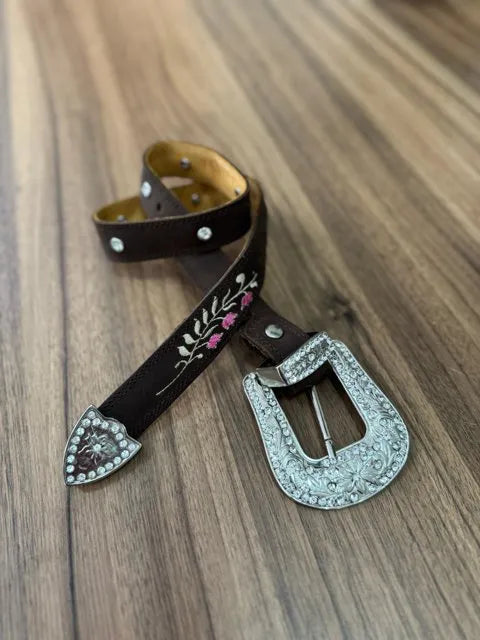 Cinto – Couro Horse Cappuccino/Bordado Flor
