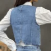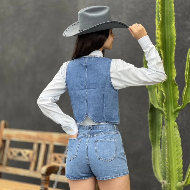 Se você busca um look deslumbrante para brilhar nos eventos country e baladas, o Conjunto B&C Shorts e Colete Lola Shine é a escolha perfeita! Composto por um colete acinturado e shorts curto, ambos no jeans escuro com aplicação de strass, esse conjunto une estilo e autenticidade para um visual marcante e cheio de atitude.
