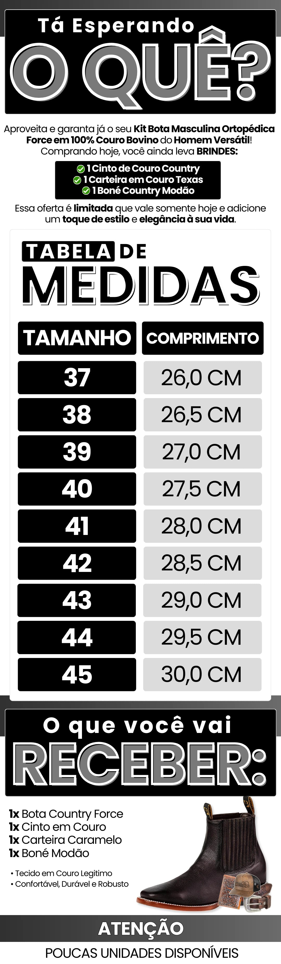 Produção limitada, sem garantias de reposição. Essa bota não é para qualquer um, é para homens de verdade, que não seguem tendências, mas criam seu próprio estilo. Se você entende que vestir-se bem é uma declaração de força, respeito e autoridade, essa é a sua peça. Mas atenção: estoque reduzido, não vacile.