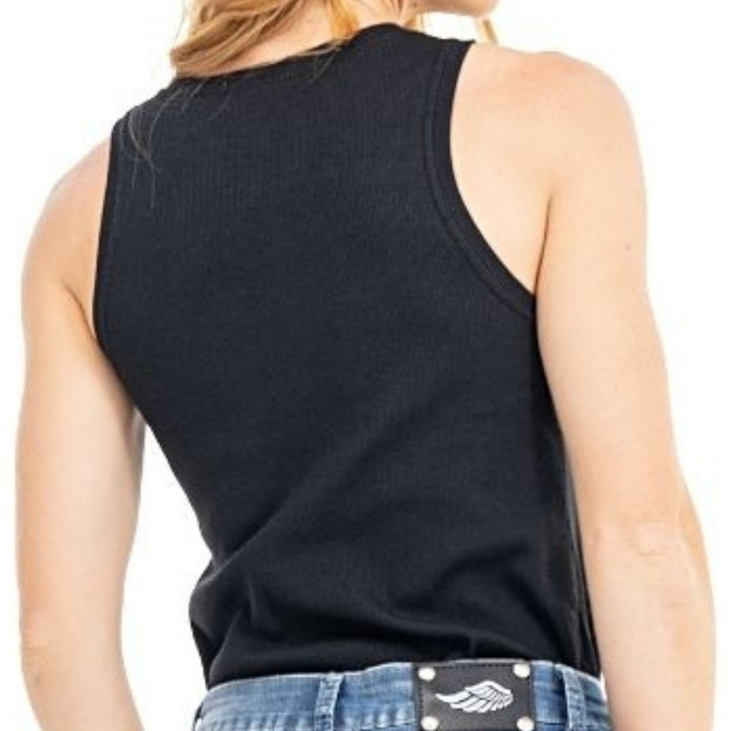 A Regata Feminina em Malha Canelada na cor preta é a escolha ideal para quem busca estilo e conforto. Com modelagem acinturada e ajustada ao corpo, ela valoriza a silhueta feminina. A gola redonda e os bordados em linha metalizada prata com o texto “Rodeo Girls” adicionam um toque especial, enquanto o ornamento em cristais traz um charme extra, inspirado em cano de bota.