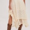 Apresentando uma charmosa saia midi de renda transparente com estampa floral, oferecendo elegância e versatilidade. Com forro interno e cós elástico, garante conforto. As camadas em camadas criam uma silhueta fluida, adequada para várias ocasiões. Eleve o seu estilo sem esforço com esta saia cativante. -A modelo mede 1,77m
