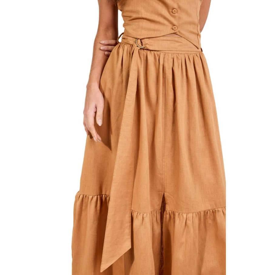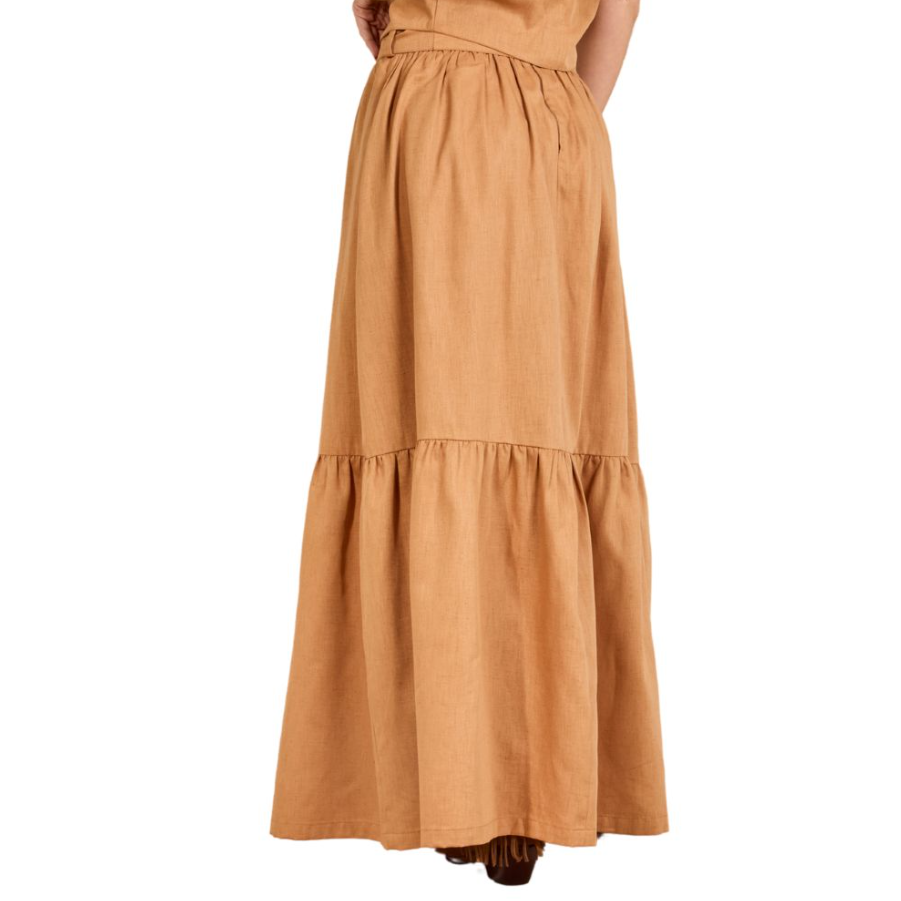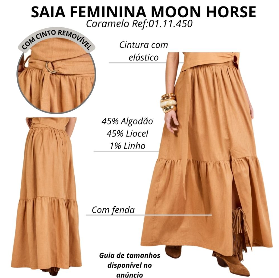 Saia Feminina Moon Horse Loren Longa Caramelo Com Cinto