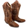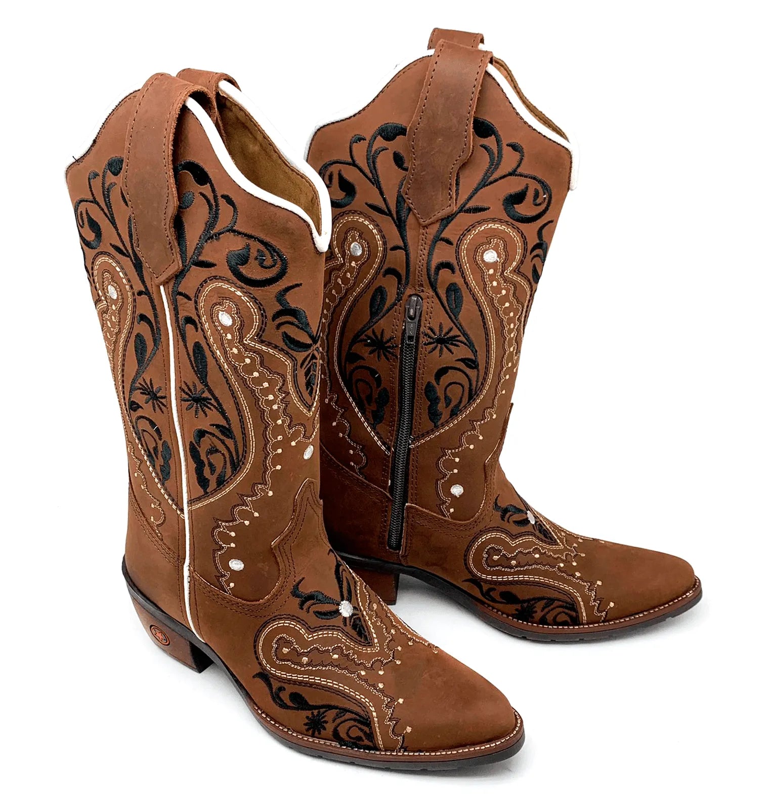 Texana Florência Bico Fino – Couro Crazy Horse Nescau | Bordados Preto, Bege e Branco