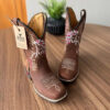 Texana Júlia Infantil – Couro Horse Nescau/Bordado Cavalo Branco e Rosa