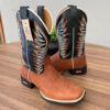 Texana Pietro – Couro Látego Preto e Horse Telha/Bordado Ramos Laranja e Branco